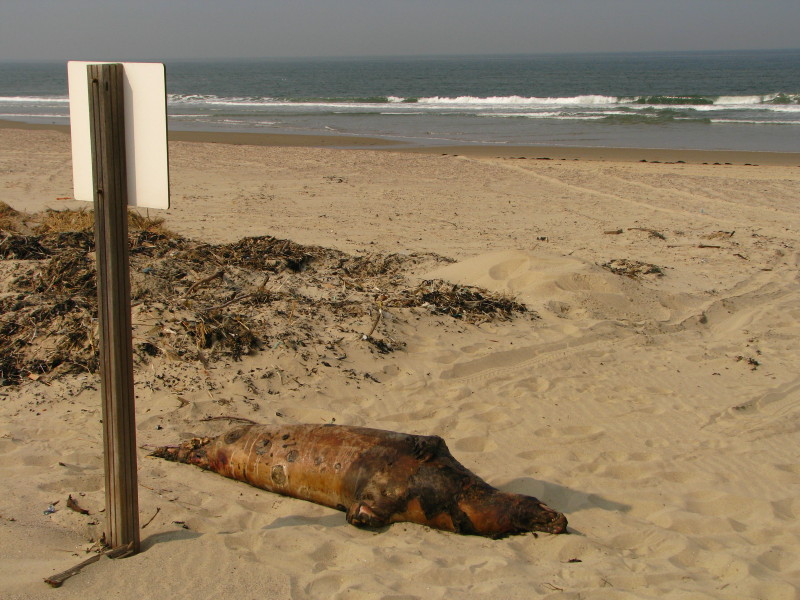 Een laatste stukje wild strand ligt bij wijze van natuurgebied ongerept tussen Oranjezon en Oostkapelle. Daar, uit de goegemeente verbannen, flaneert bij de eerste warme zonnestraal de ware naturist. Tussen het wilde duingras spot men dan plots stijve bossen sprok schaamhaar of fijn gecoiffeerde mosselen en saucissen in alle maten en staten (honden aanlijnen niet voor niets verplicht) of men trapt er tot de knieën door de verborgen holen van het immer mysterieus zeekonijn (bottinnes vol zand). Daar, ver van de geklede wereld, hoog voorbij de waterlijn, verzamelt de Zeeuwse overheid het langs de kustlijn bij elkaar geharkt verteerbaar afval tot een imposante composthoop van zwart zeewier waartegen skeletachtige accenten afsteken van door zon en zout witgebleekt takkenhout en zachtgeschuurd plankafval. Deze vakantie zagen we er opvallend veel uitgevreten kabeljauwskoppen, krengen van strandplevieren, meeuwen en kievitten, uitgeregende jan-van-genten met okergelige koppen en donzen nekken en met in betere dagen nog machtige vleugels van bijna 2 meter spanwijdte, eentje gruwelijk omgekomen ten gevolge van een grote vishaak in de schouder. Extra dit jaar, een hoop aangespoelde ajuinen en het kadaver van een bijna twee meter lange zeehond, op zijn/haar zij, de daarstraks nog dodelijke tanden grotesk priemend in de van ontbinding weeïge lucht die, met de ijzige zeewind afgevoerd, tot het niets verwaait in de frisse wijdsheid van Zeelands uitgestrekte polders.